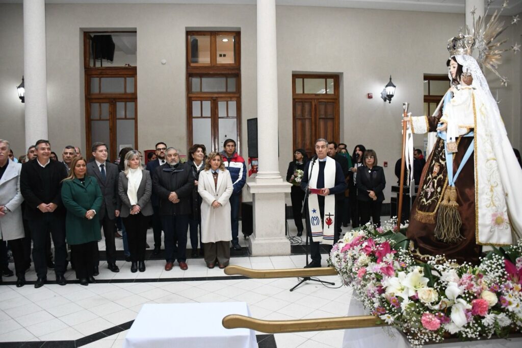 La intendente de la Capital, Ing. Norma Fuentes, recibió en el palacio municipal la visita de la imagen de Nuestra Señora del Carmen, Patrona de la Ciudad, en el marco de su festividad y de las celebraciones religiosas que se llevan adelante por el 472° aniversario de la Madre de Ciudades.También participaron del acto de recepción el presidente del Concejo Deliberante, Humberto Santillán; los funcionarios del gabinete municipal, concejales, empleados municipales, vecinos y turistas. Rolando Tenti, párroco de la Catedral Basílica, estuvo a cargo de oficiar la ceremonia, donde hizo una evocación religiosa y pidió a través de una oración la bendición para las autoridades, los empleados y los vecinos de la ciudad. La imagen fue trasladada por personal de la comuna desde la Catedral hasta el patio interno de la sede municipal, donde se llevó a cabo una celebración y permaneció hasta el mediodía para recibir la gracia de sus devotos. Además, se realizó la bendición de las imágenes de la Virgen del Carmen y de Mama Antula que se instalaron en el ingreso al palacio municipal. En este sentido, la Ing. Fuentes pidió a la patrona de los santiagueños «que nos cuide a todos con su manto protector, especialmente a los trabajadores del municipio, para que nunca les falte el pan ni la salud».»Esperamos seguir fortaleciendo a la familia, construyendo la unión, la armonía y el respeto hacia el otro, sin odios y sin violencias, para alcanzar una sociedad más humana y mejor para todos», expresó.